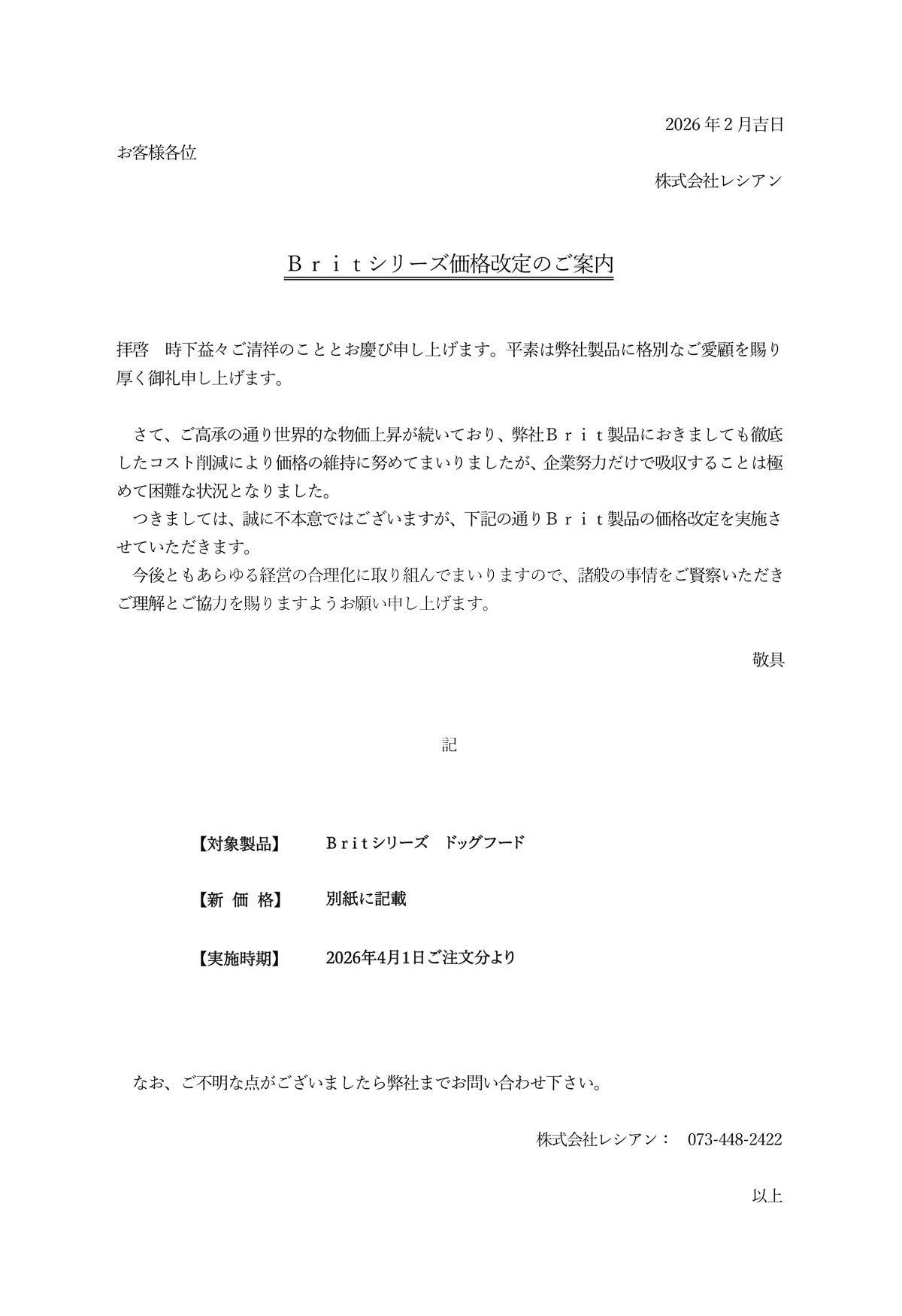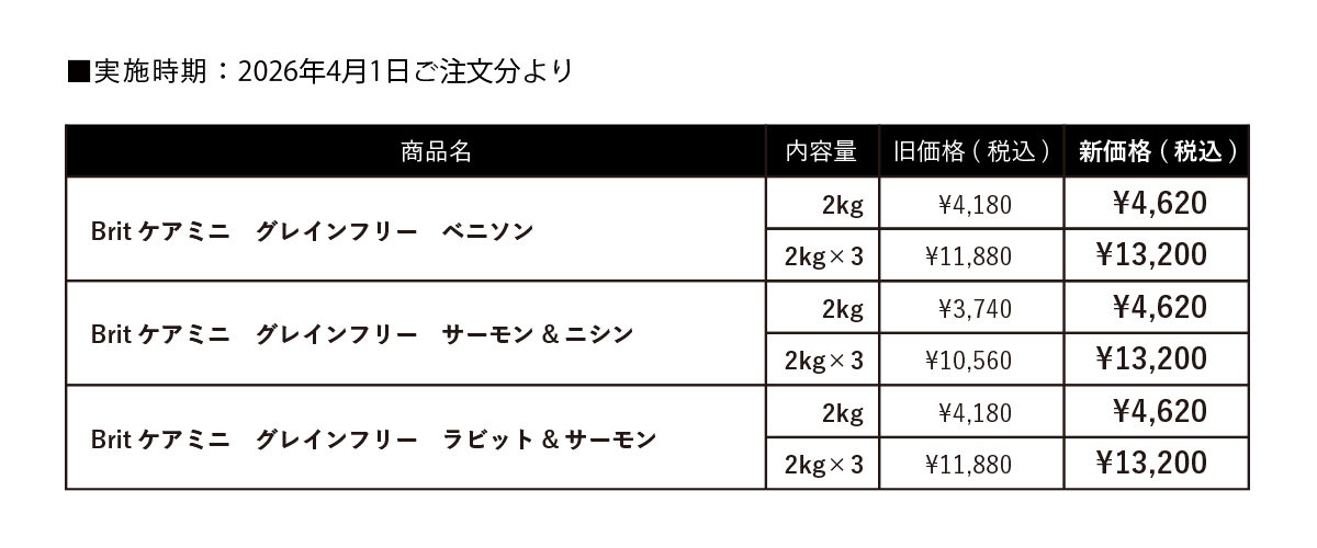 Brit 価格改定のお知らせ(2026年4月1日より改定)