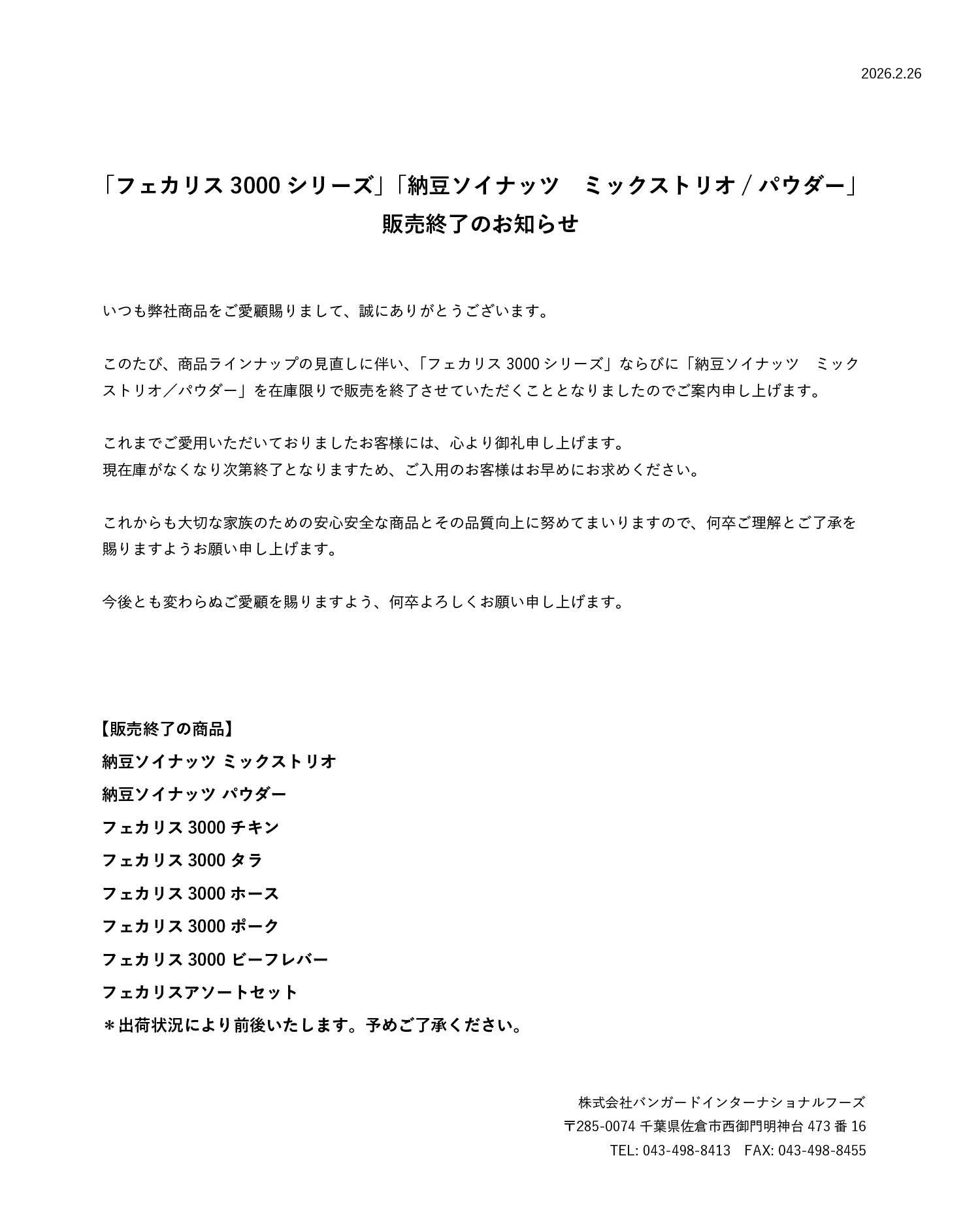 いつも弊社商品をご愛顧いただきありがとうございます。