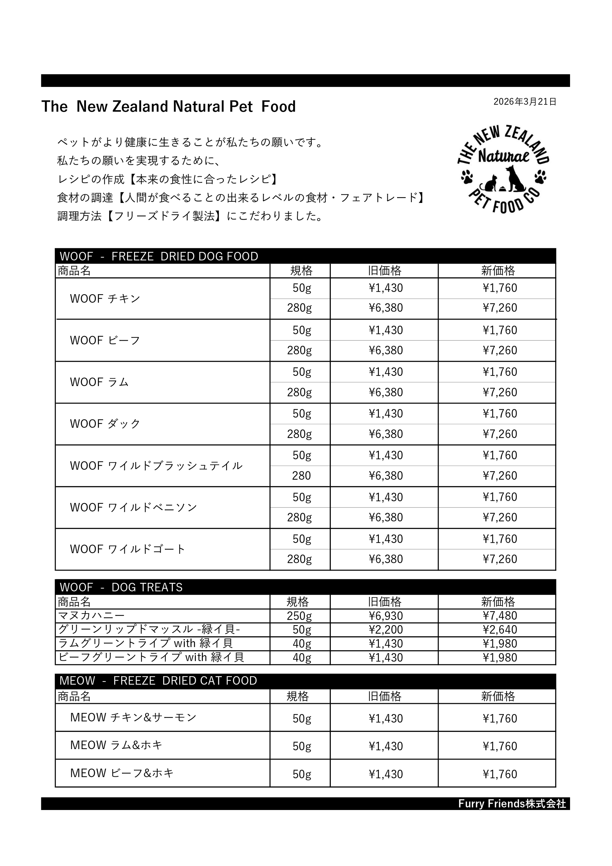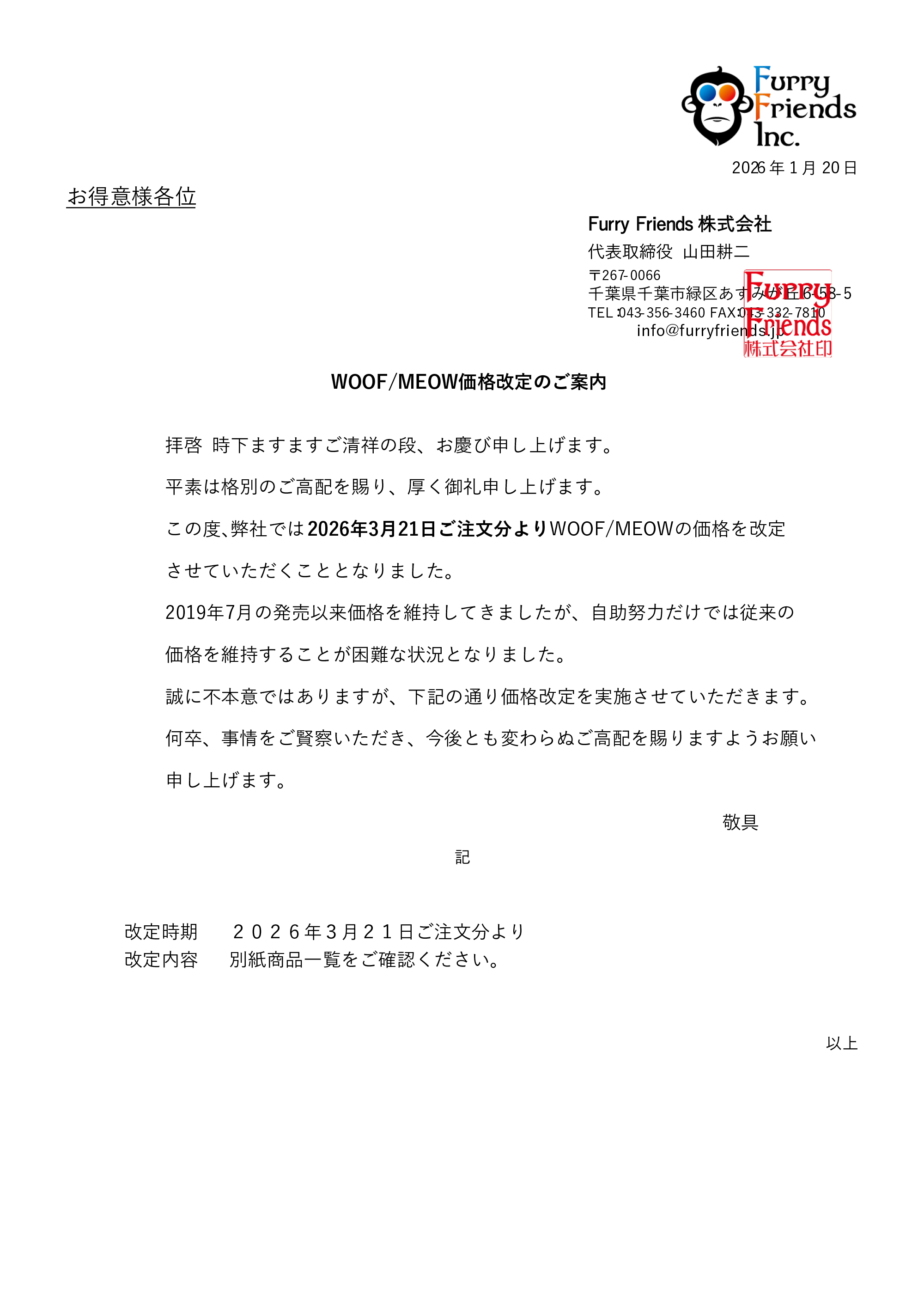 WOOF / MEOW 価格改定のお知らせ(2026年3月23日より改定)